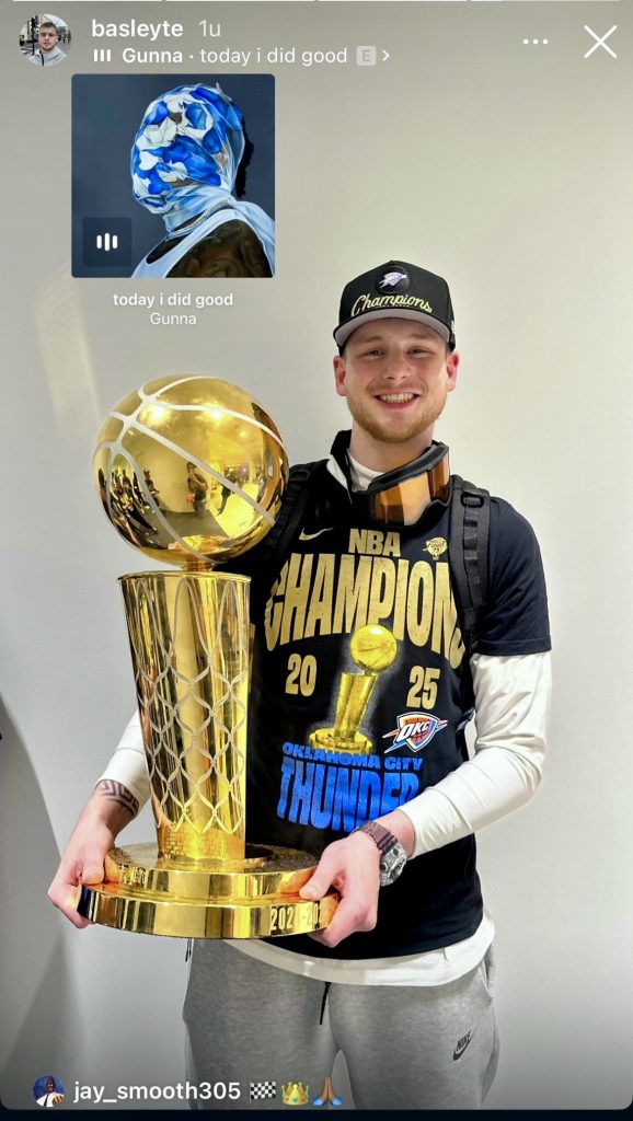 Het, in basketball, wonderbaarlijke is gebeurd: “Onze” Bas is in de NBA Kampioen geworden met de Oklahoma City Thunder! Bas, de zoon van Adriaan, is als video-coach van de Oklahoma City Thunder de mede winnaar geworden in de NBA play-offs ! De Thunder wonnen van de Indiana Pacers ( 103 – 91, eindstand 4 – 3). Onze voormalige Giant heeft het gemaakt in de Verenigde Staten. Eerst als geweldige speler in de NCAA en daarna, na een verassende overstap van speler naar coach in de NBA!!